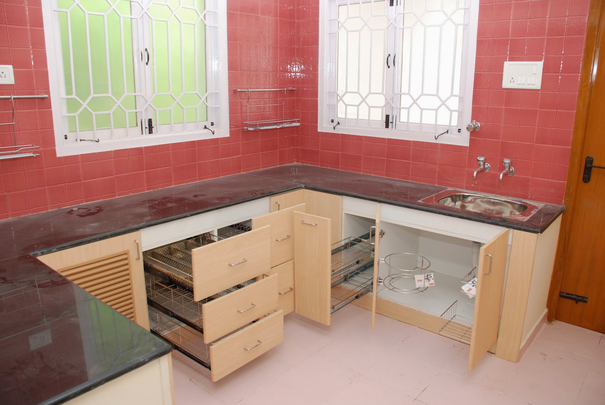 We make complete modular kitchen with Stainless steel cutlery pull out basket, green/Century ply cabinet, with decorative laminate finish in the bottom unit, which consist of several nos. of pullout baskets made of stainless steel wires and mesh, to facilitate cutlery, cup & saucer, rice plates, grains and spices, bottles and all sorts of kitchen wares as per your measurement and requirement at best price. We assure 100% quality,We have deployed interior designers with warranty & service.
